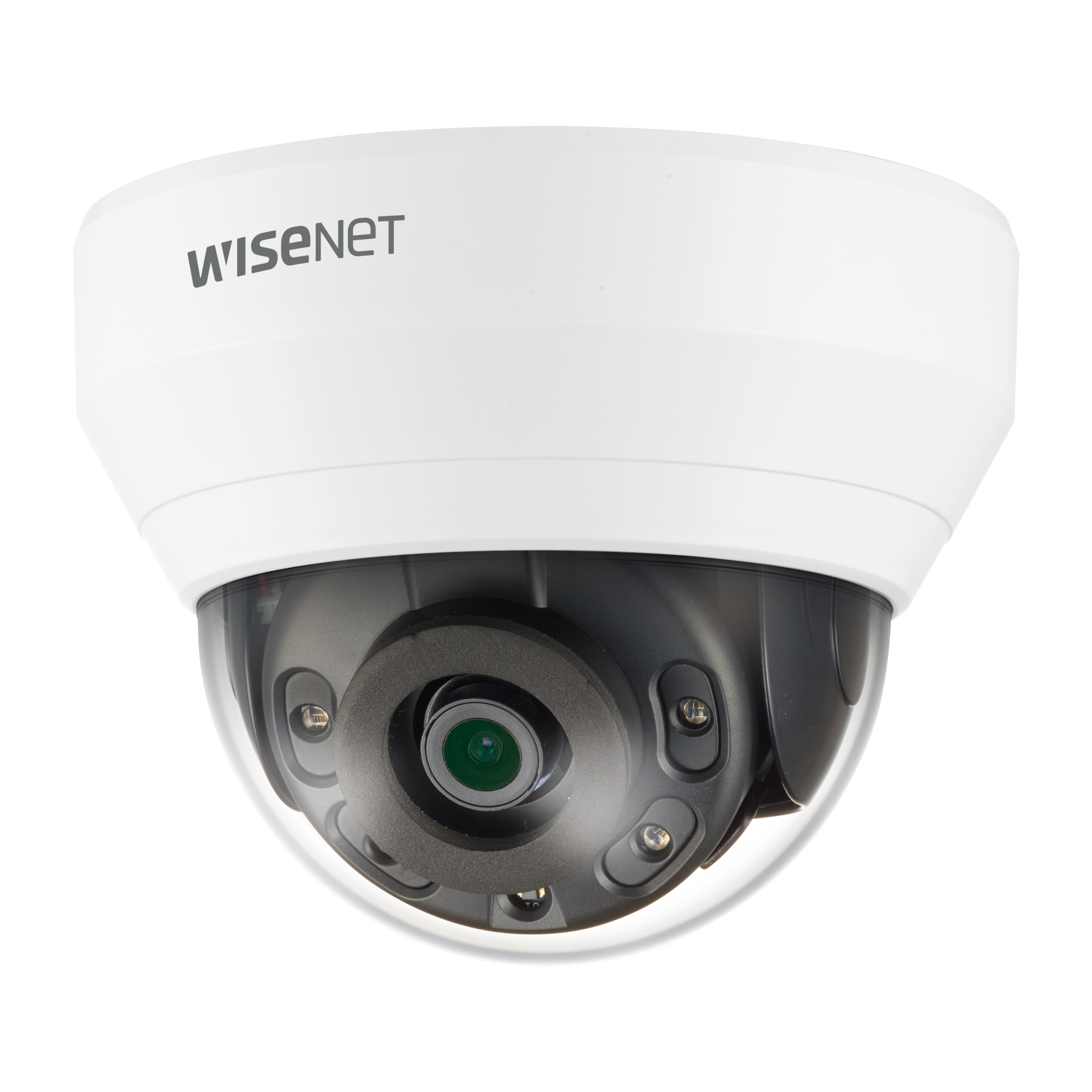 Q series network IR indoor dome camera (No Audio), 2MP @30fps, 2.8mm fixed lens , H.265/H.264/ MJPEG with WiseStream, Multiple streaming, 120dB WDR, Day & Night (auto ICR), IR viewable length 20m, Motion detection, Tampering, Defocus detection, Hallway View(90°/270°), microSD/ SDHC/SDXC slot, LDC support (Lens Distortion Correction), PoE/12VDC
